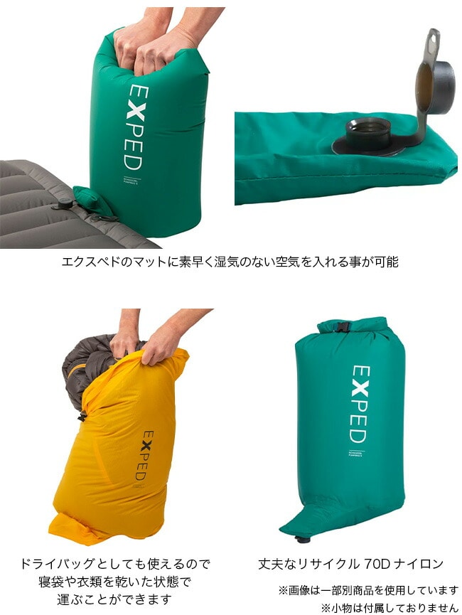 湿気のない迅速な空気封入をするポンプ。※エクスペドマットは呼気で膨らませないでください。