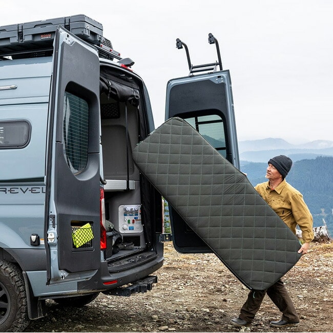 アルパインのベースキャンプ、車中泊、バンライフ、都市型ノマド生活まで、あらゆるシーンで極上の眠りを提供します。最大の特長は、ウール断熱入りのオーガニックコットントリコット製トップカバー(特許出願中)。