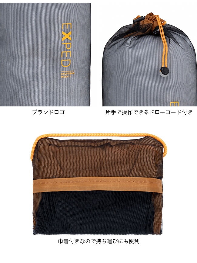 寝袋、衣類、その他の個人装備に最適です。超軽量、通気性、透明性に優れたメッシュバッグ。
