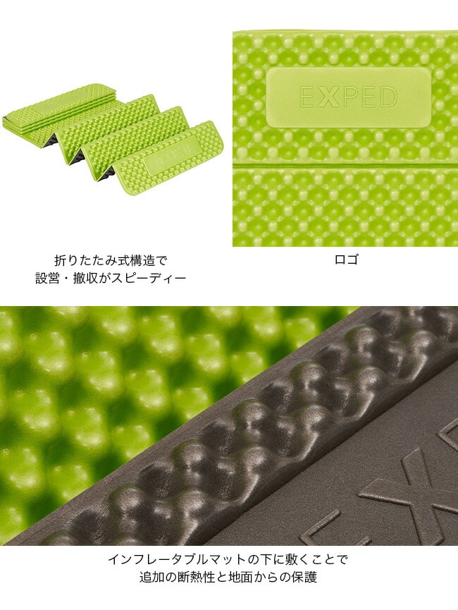 トレッキング、バイクパッキング、キャンプなど、さまざまなアウトドアシーンで活躍する頼れる一枚です。R値1.7の断熱性能により、春∼秋の3シーズンでの単体使用に適しており、またインフレータブルマットの下に敷くことで、追加の断熱性と地面からの保護を提供します。
