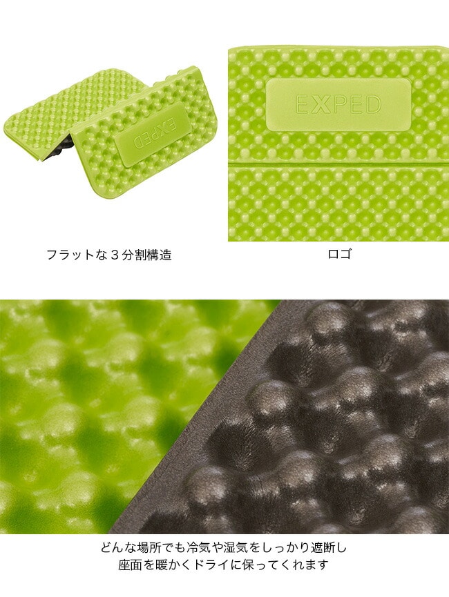 雪上や濡れた草地、石の上、ベンチなど、どんな場所でも冷気や湿気をしっかり遮断し、座面を暖かくドライに保ってくれます。