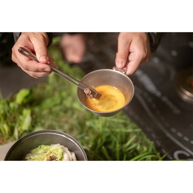 元祖・火にかけられるカップ。ハンドルが折りたためるので他のクッカーへのスタッキングが楽に出来まず。