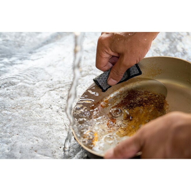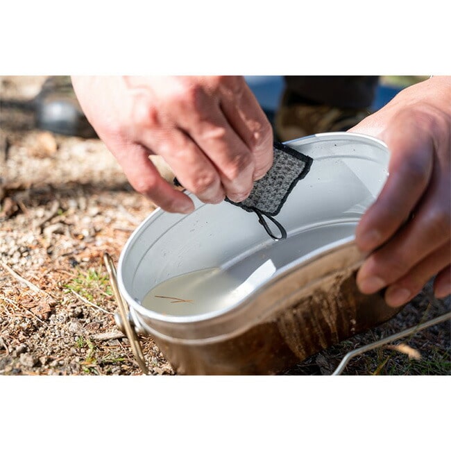 特殊な織構造のナイロン製で片面は頑固な汚れ用にしっかりとした繊維を編み込んでいます。