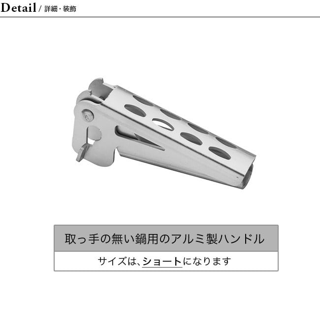 取っ手の無い鍋用のアルミ製ハンドルです。