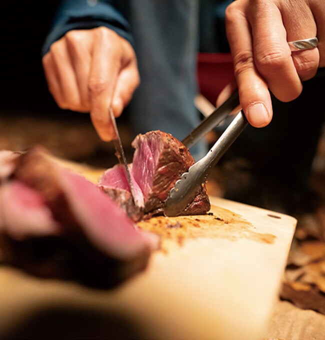 Tボーンステーキのような肉塊でもガッチリ掴めます。
