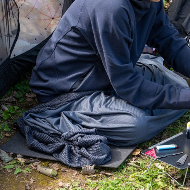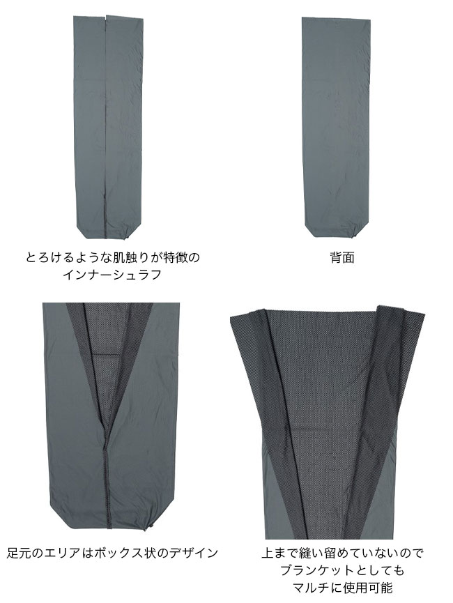 普通のインナーシュラフをキルト状にすることで、寝袋のブースターとしてだけでなくブランケットとしてマルチにテントサイトで活躍します。