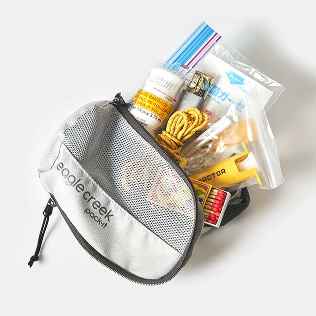 XSサイズは充電器やケーブル類などの小物、アンダーウェアやアメニティグッズなどの収納に最適です。メッシュ部分から中身が確認でき、収納したものがすぐに見つかります。