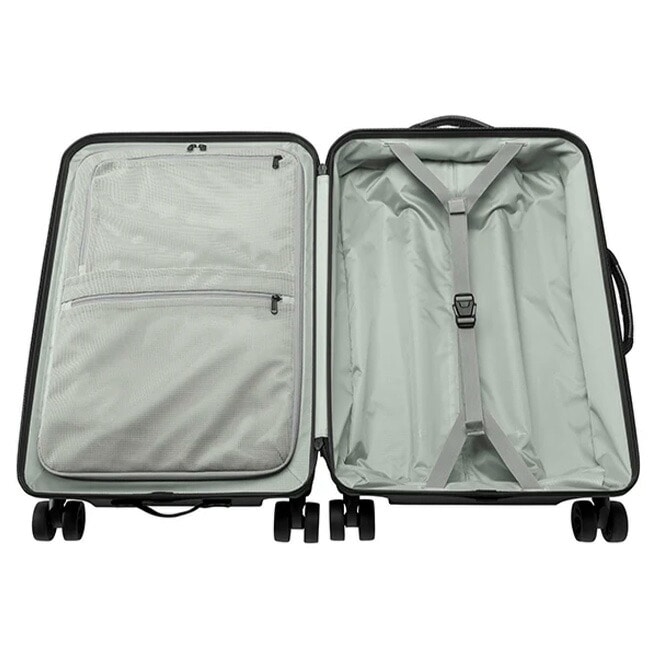 ハードケースとソフトケースの両方の長所を活かした設計が特徴のハイブリットキャリーバッグで、ポリカーボネート製のハード素材部分が外部からの衝撃から中身をしっかり守り、長期の旅行や海外旅行にも安心して使えます。