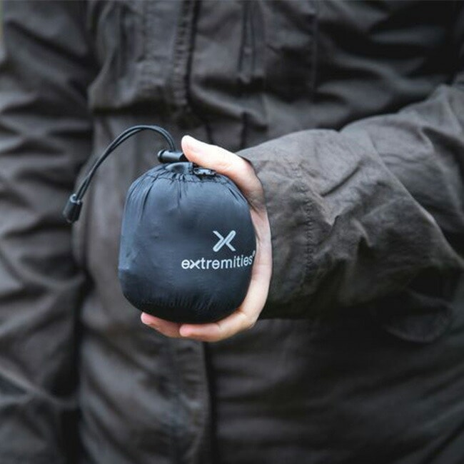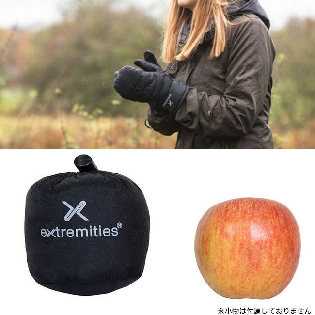 約6×6cmの収納バッグ付きでコンパクトに収納可能。手のひらは補強付きで耐久性を向上、人差し指と親指はタッチスクリーン対応。