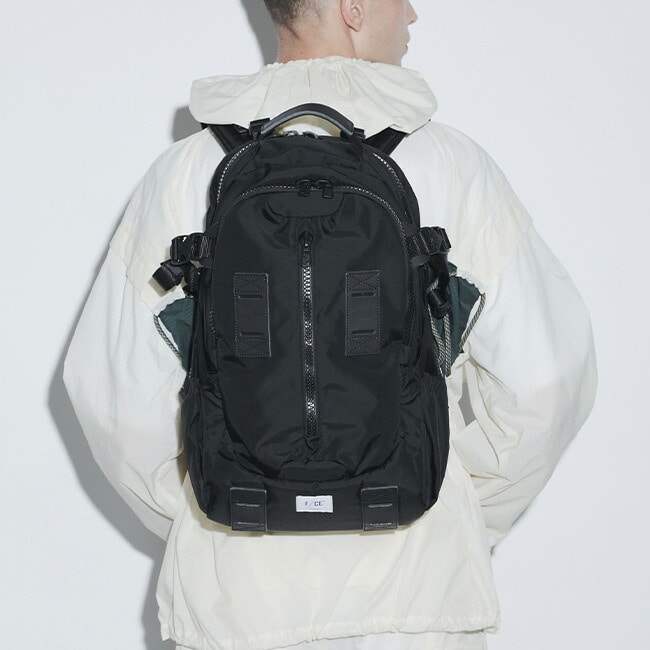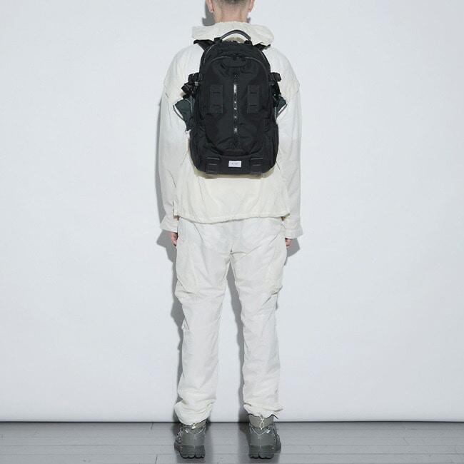 撥水性・耐久性を兼ね備えたリサイクル素材を使用し、テープのロールエンド処理や栃木レザーのパーツ使いなどディテールにもこだわった、機能性とデザイン性を両立した高性能デイパックです。