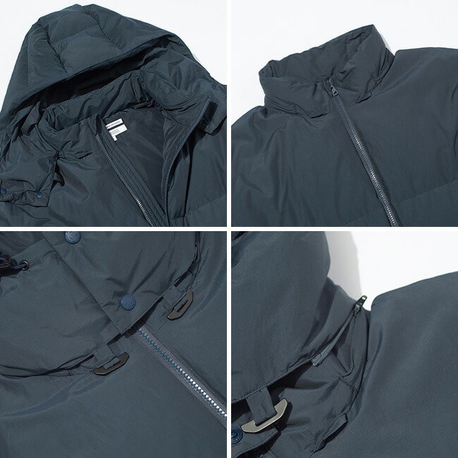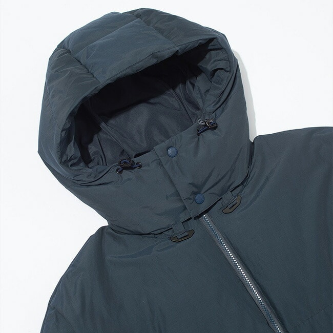 ジャケットや寝袋、布団から回収した羽毛を丁寧に再洗浄し、650フィルパワーの高品質ダウンとして再利用。さらに表地にはリサイクルナイロンとオーガニックコットンを高密度に織り上げたマットな素材を採用し、しなやかさと耐久性を両立しました。