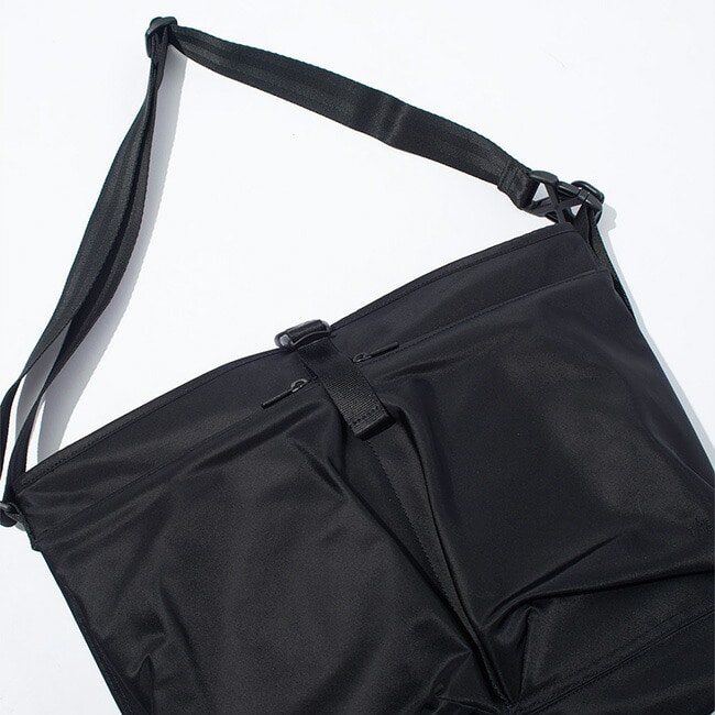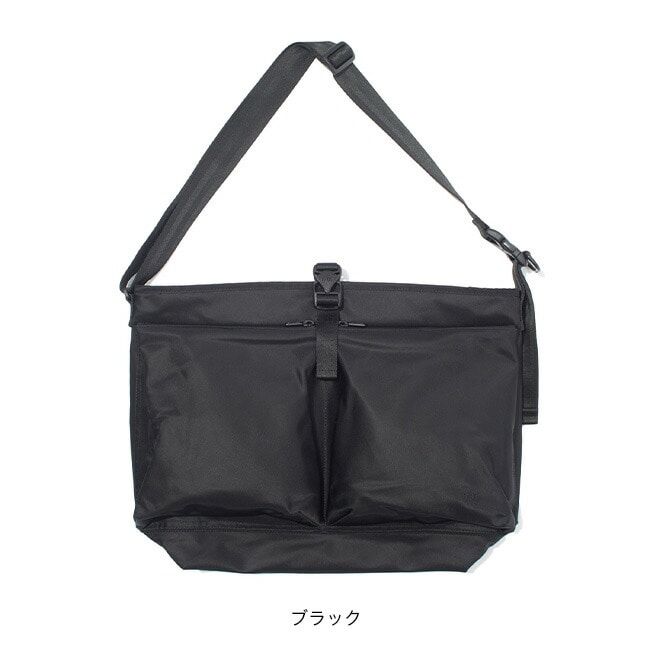フロントに配置されたヘルメットバッグのようなポケットが特徴です。ショルダーベルトは、メッセンジャー仕様でワンタッチでアジャスト、調整、が可能です。