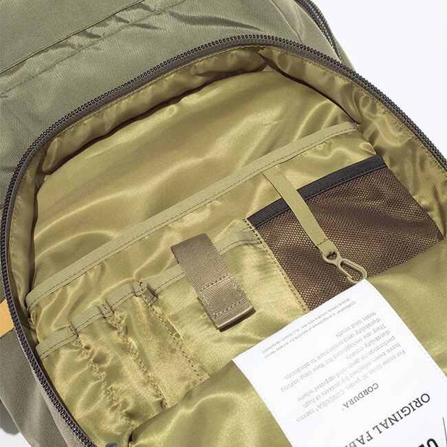 Cordura®初の100%リサイクルナイロンテキスタイル「Cordura® re/cor™」を使用した、高機能バックパック。420デニール糸を高密度に織り上げることで、軽量でありながらCordura®の厳しい基準をクリアする強度・耐久性を実現しました。