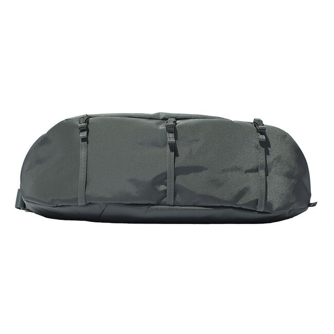 底部には10mm幅のウェビングテープとバックルを装備し、アウタージャケットの固定や、マチを畳んでコンパクトに調整することが可能。