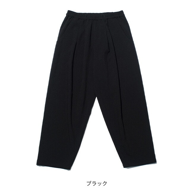 F/CE.の定番として高い人気を誇る、トロピカルストレッチ素材を使用したバルーンテーパードパンツ。2本のインタックを施すことでヒップ周りに程よいゆとりを持たせつつ、裾に向かってすっきりと細くなるテーパードシルエットを形成。