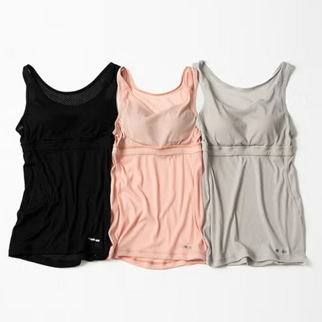 バストの汗冷えやベタつきを軽減する、アウトドア女子のためのブラタンクトップです。