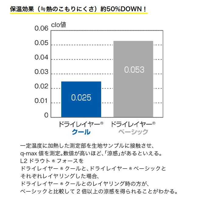 ドライレイヤー®ベーシックの約2倍(薄さとq-max値による)の涼しさを実現しています。