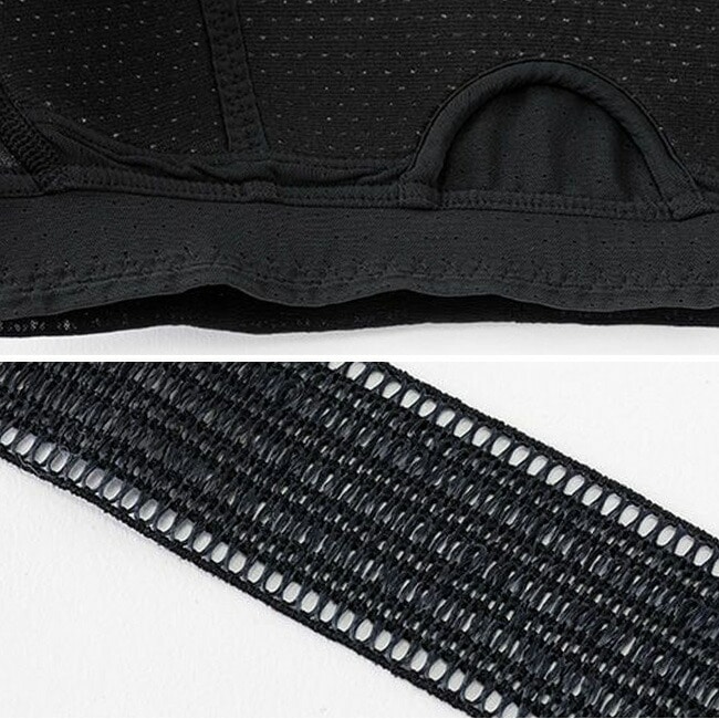 独自開発の三層構造ブラパッドは、優れた汗抜けとカップ自体が保水しないため、汗をかいてもひんやりとした冷えを感じにくく、汗だまりをしやすいアンダー部分には、汗抜けのいい柔らかなメッシュゴムを採用し、汗のニオイやベタツキを抑えます。