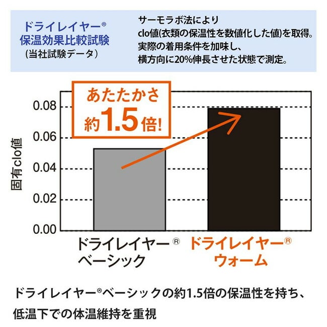 ・ドライレイヤー®ベーシックの約1.5倍の保温性