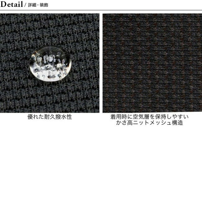 かさ高ニットメッシュ構造によって空気層を保持しやすいため、レイヤリング時の保温性を向上させ、スキンメッシュ®の1.5倍の保温性を実現しています。