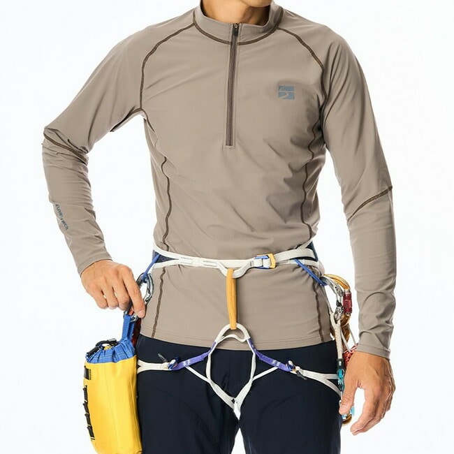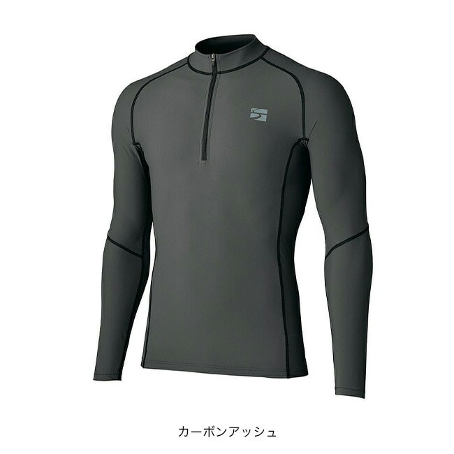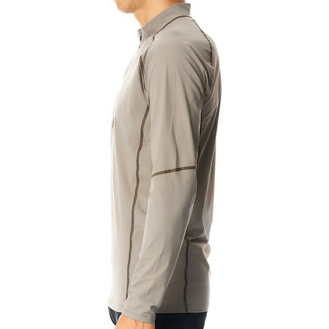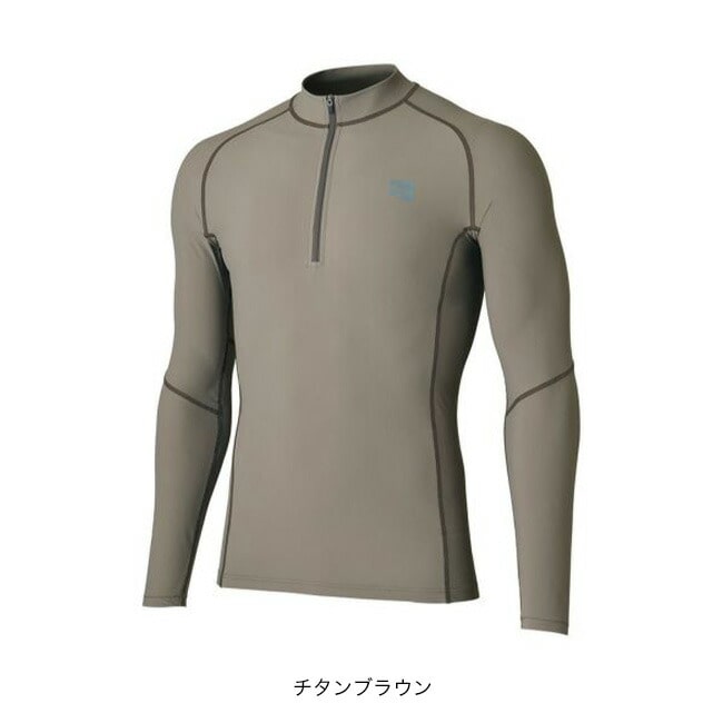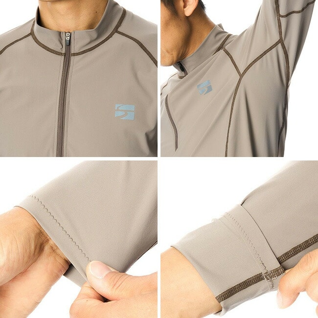 フロントジップで着脱や温度調節ががしやすく、日差しや擦れから首回りを保護するジップネックタイプです。