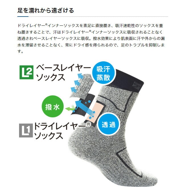 汗濡れによる冷え、靴ずれ、においなどのトラブルを軽減します。