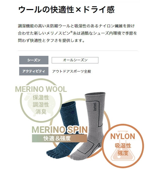 素材をナイロン×未防縮の天然メリノウールのナイロンメリノスピン®糸に変え、耐摩耗性が約70%UP。