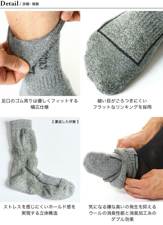 ※本商品(メリノスピン®ソックス)は、軽さと機能を両立させるために繊細なニット生地を採用しています。繰り返しの摩擦、面ファスナーや枝などのひっかけ、硬い物との接触により、生地に損傷が生じる恐れがありますのでご留意ください。