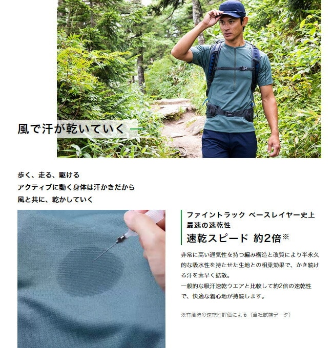 ・ファイントラックのベースレイヤーで最速の速乾性