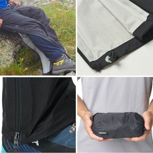 ファスナー単体で十分な耐水圧を備え、稜線上など風圧を受けるような状況でも雨水の浸入を抑制。