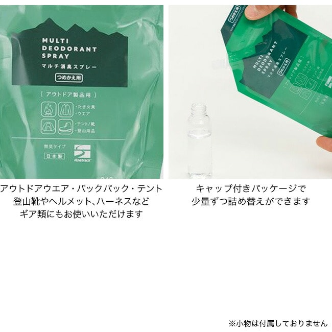 汗・皮脂のニオイはもちろん、足臭、焚き火臭、魚臭、糞尿臭などアウトドアの気になるニオイに消臭効果があります。