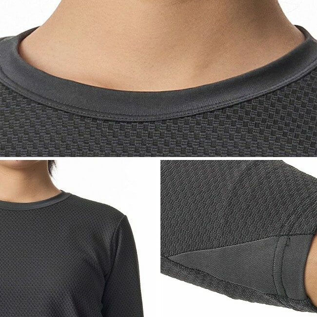 表面側は立体構造、肌面側は微起毛をかけることで、吸汗性と軽量性を損なわずに最大限の保温力を発揮できるように設計。