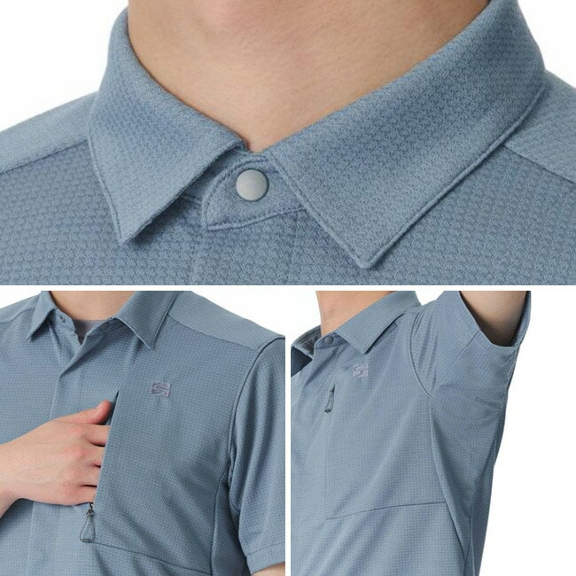 シャツとして一般的な織物を使わず、ニット地にすることで高い通気性と動きやすさを実現しました。ニット素材には独自素材のラミースピン®片手で操作しやすい軽量スナップボタン、ファスナー付で収納力に優れたポケットなどアウトドアでの使いやすさと軽さも追求しています。