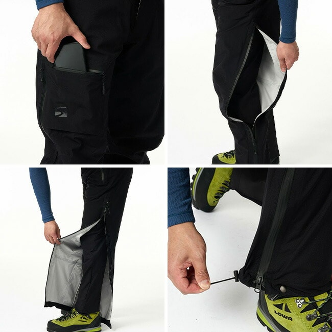 アイゼン使用時の擦れに強いアイゼンガード、グローブを付けたまま調整が容易なウエスト調整機構など、少しステップアップした雪山にも対応可能なディテールです。
