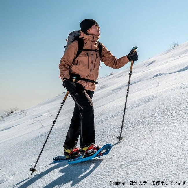 生地に備わる高いストレッチ性はラッセルなど雪山での大きな動きにも追従し、レイヤリングによる着膨れや動きにくさを軽減します。