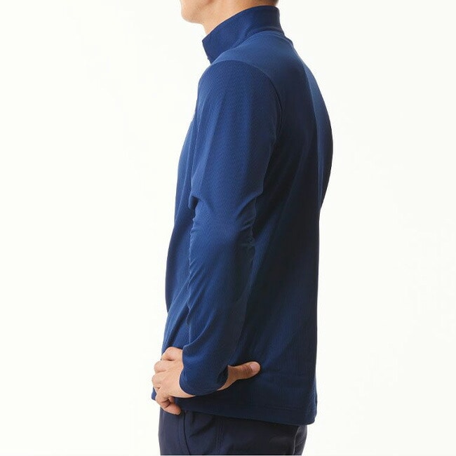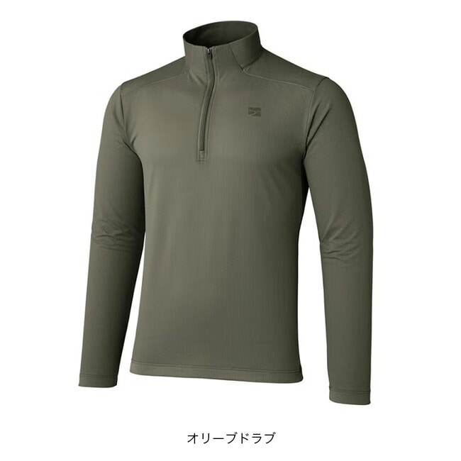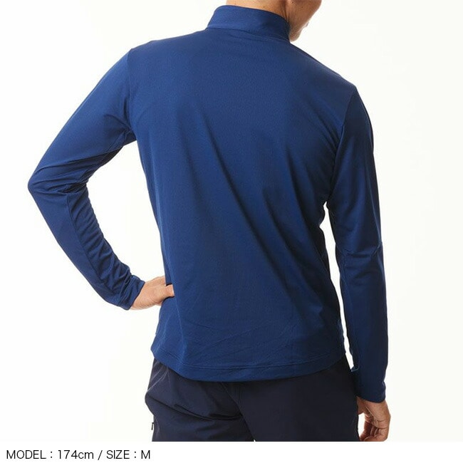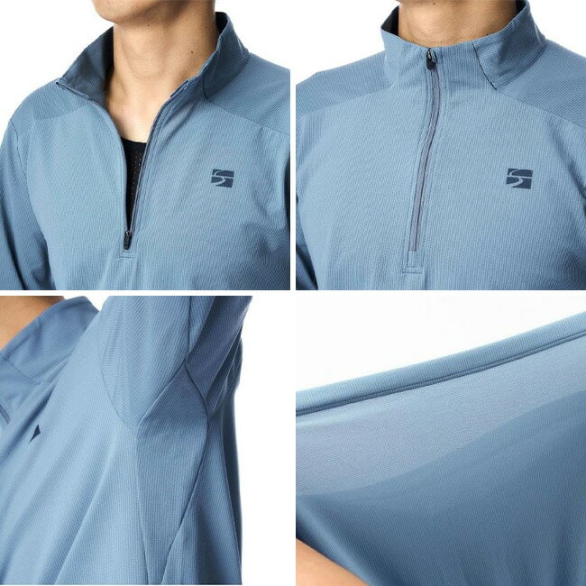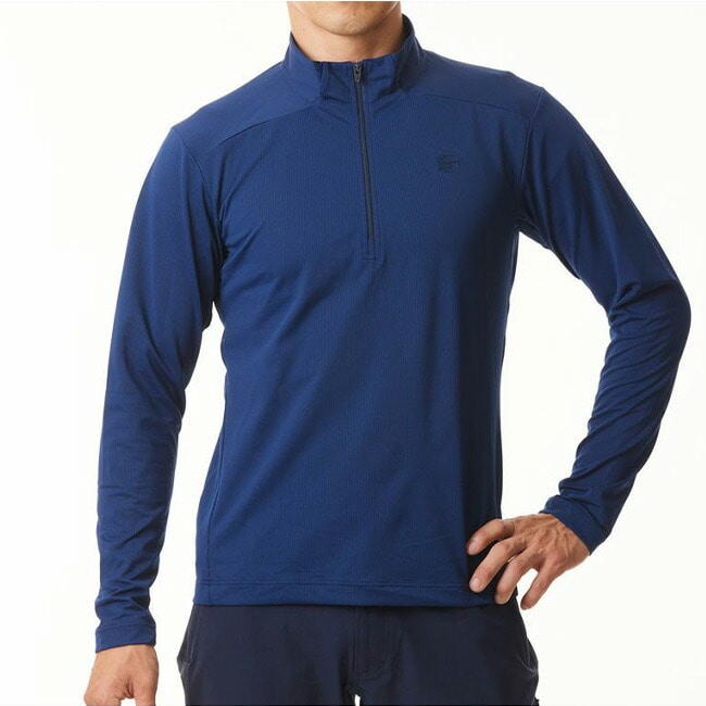 フロントジップを開放することで温度調節が可能で、襟が首元の日よけになるジップネックです。