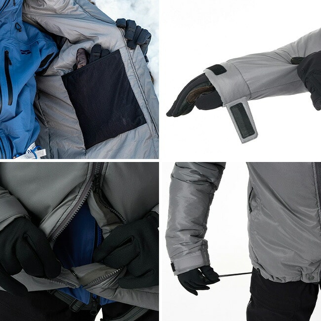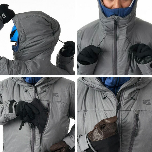 携行性に優れたビレイパーカーとしてはもちろん、雪山でのテント泊や雪洞泊などのシーンに防寒アウターとして活躍します。