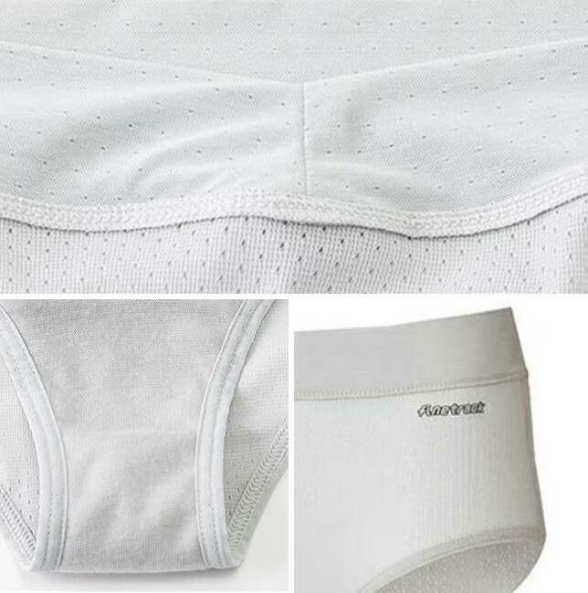 股部分に肌触りの良い吸汗の裏あての付いた深履きタイプのショーツです。