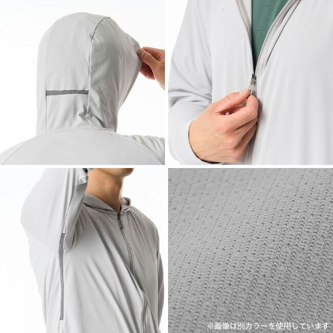 太陽熱の影響を抑える遮熱と、汗を素早く乾かす吸汗速乾を、生地設計で両立させたフーデッドベースレイヤー