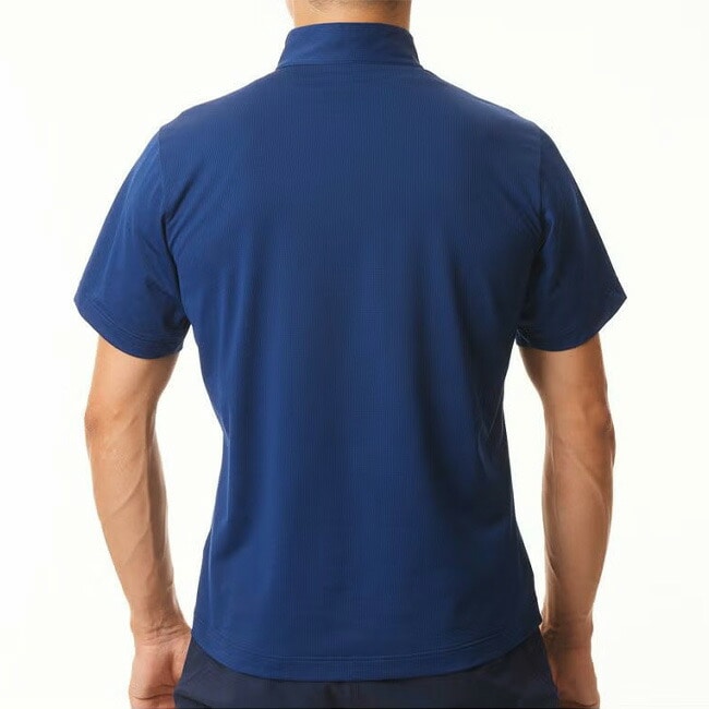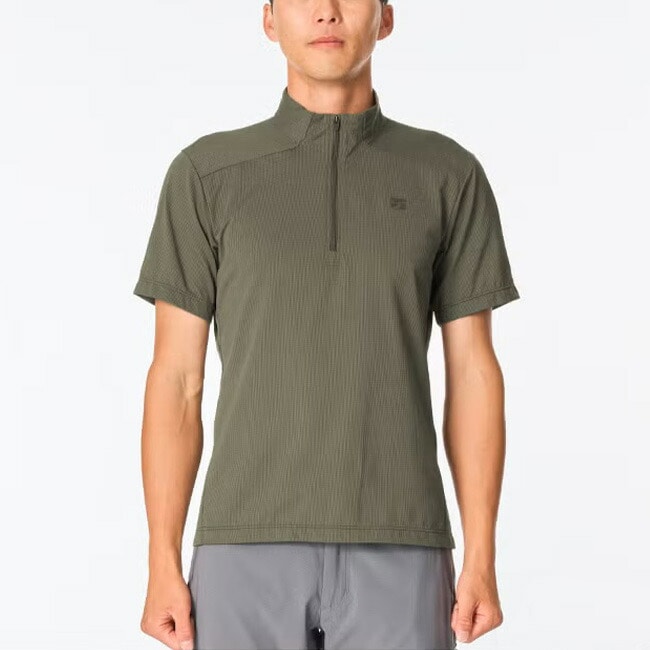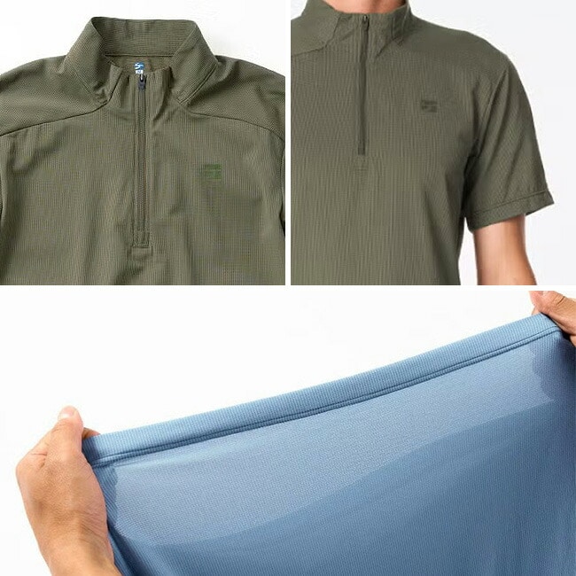 フロントジップによる温度調節が可能で、襟が首元の日よけになるジップTです。