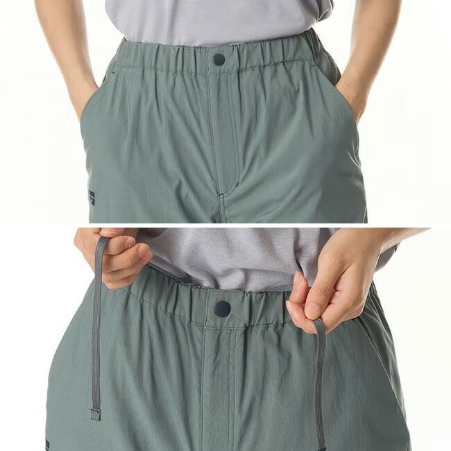 ・紐で調節できるフラットなウエスト