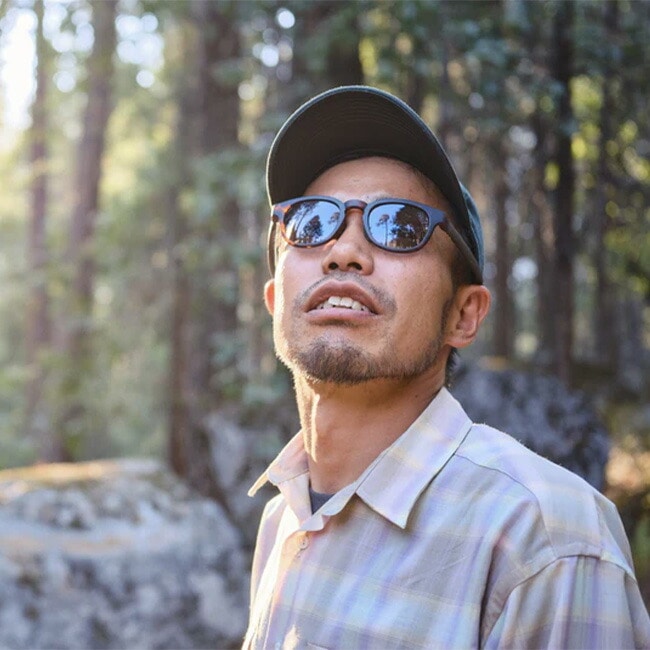 フィールドでもタウンでもカジュアルに掛けれます。採用しているグレーレンズは景色の色味をあまり変えず眩しさを和らげてくれます。
