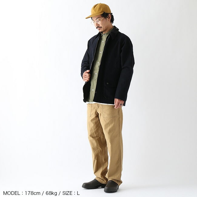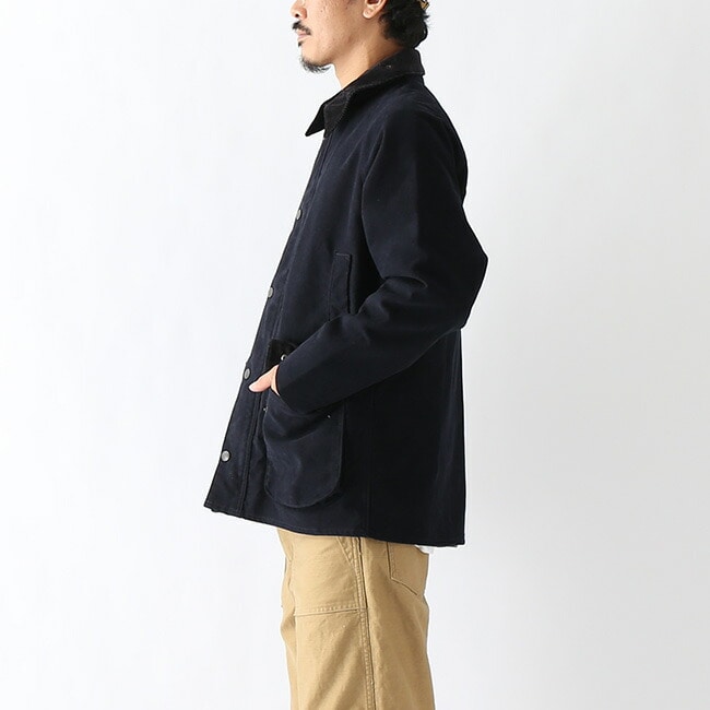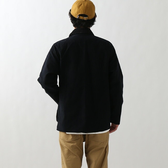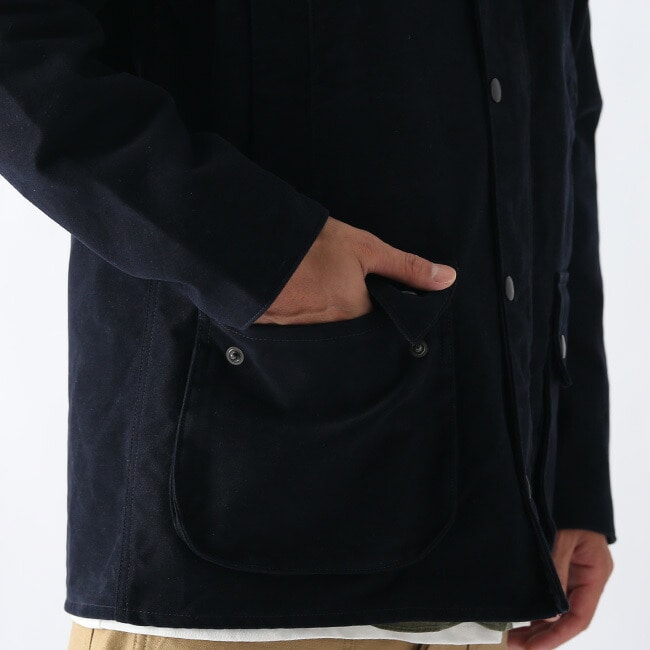 限界まで高密度に織り上げ、針で起毛密度を高めた極厚のモールスキンをオリジナルで製作。毛足を短く剪毛し、素材感を引き出しつつピリング防止効果を持つ素材。
