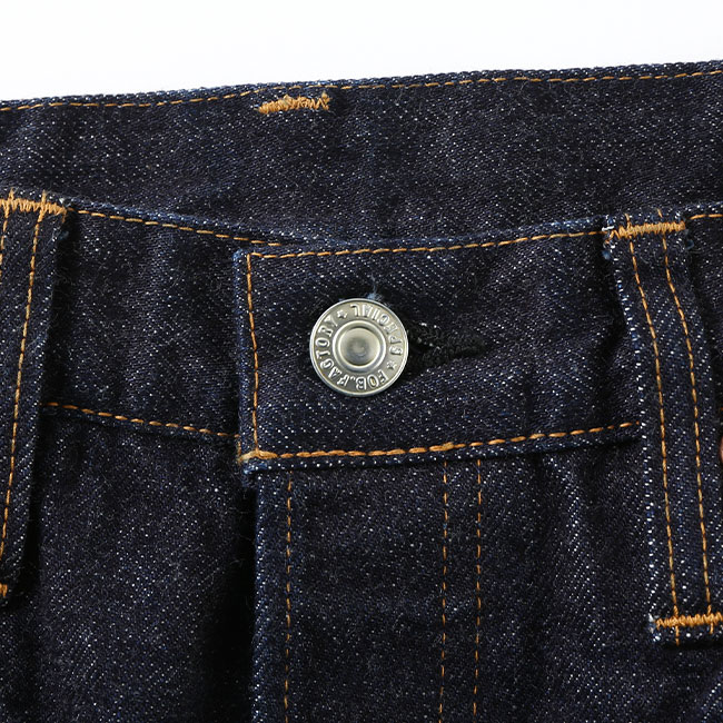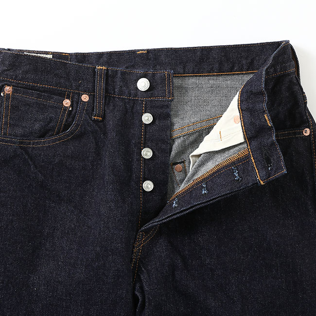 やや深めの股上、ゆとりを持たせたもも周りに程よいテーパードシルエット。ワンウォッシュで染めが深く色が濃い為、色落ちに時間は掛かりますが、自分らしく育てることができるジーンズです。