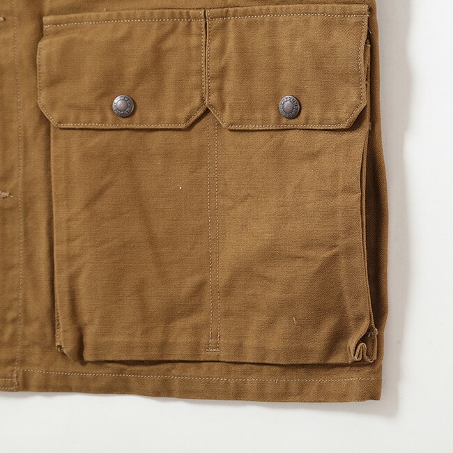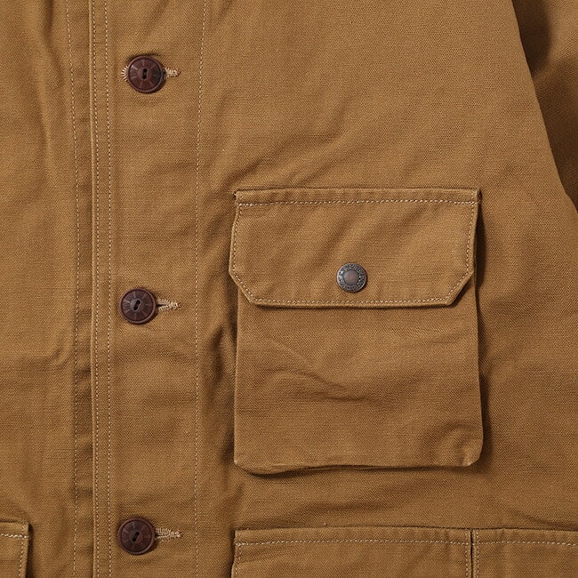 コットン・ダックで仕立てたハンティング・ジャケットです。このほどよいオンスのオリジナル生地の質感が最高です。