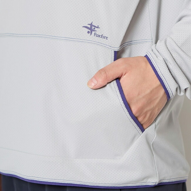 防虫、吸汗速乾、UVカット機能を持つトランスウェット・スコーロン素材のプルオーバーフーディ