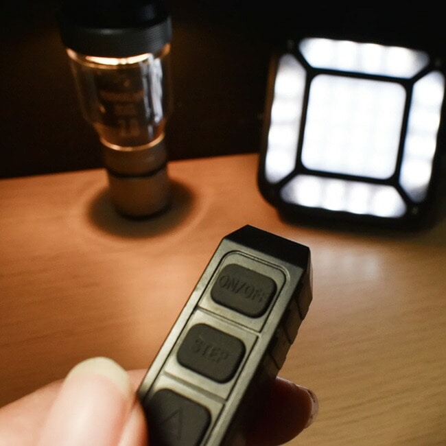 直接本体のボタンを押さなくても、離れた場所から操作が出来るので高い位置に設置したライトや寝袋に入りながら等移動せずに行え便利です。赤外線を利用しているので、切替や繋ぎ直しなどの必要がなく簡単操作。