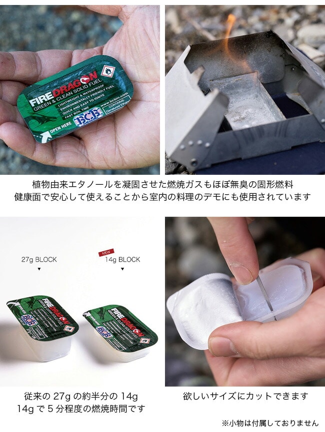 ※この製品は固形燃料のみで、ストーブは別売です。