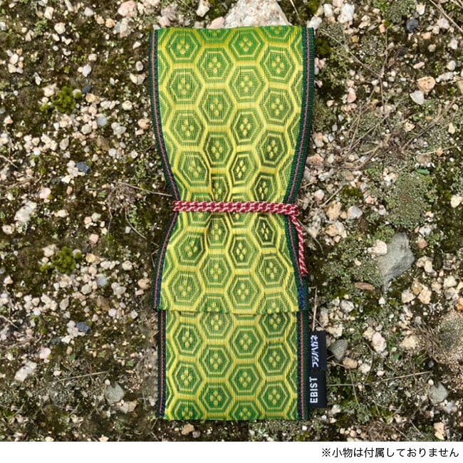 畳縁ならではの軽さと丈夫さを兼ね備え、巻いて結ぶだけのシンプルな構造で、使うほどに手になじみます。