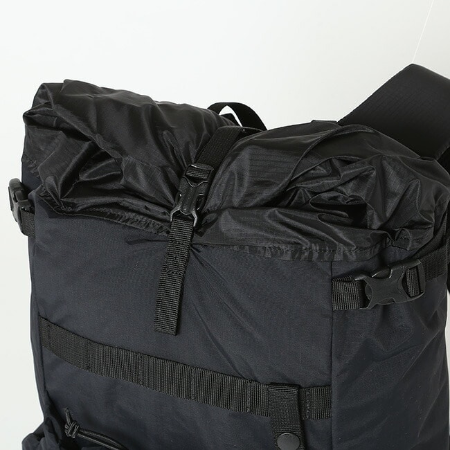 本体生地にリサイクルナイロン「MIPAN regen」を使用したロールトップバックパック。